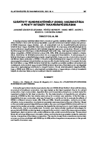Jakabné Sándor, Zsuzsanna and Révész, Norbert and Havasi, Máté and Andre, S. Bogevik and Shivendra, Kumar (2020) Szárított kukoricatörköly (DDGS) hasznosítása a ponty intenzív takarmányozásában. ÁLLATTENYÉSZTÉS ÉS TAKARMÁNYOZÁS, 69 (4). pp. 387-400. ISSN 0230-1814