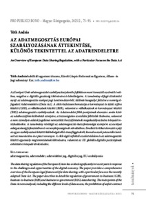 Az Európai Unió adatmegosztási szabályozása jelentős fejlődésen ment keresztül az elmúlt években, reagálva a digitális gazdaság kihívásaira és lehetőségeire. A tanulmány átfogó áttekintést nyújt az adatmegosztás európai jogi keretrendszeréről, különös hangsúlyt fektetve a nemrég elfogadott Adatrendeletre (Data Act). A cikk részletesen bemutatja a kormányzat és üzleti szféra közötti (G2B), a vállalkozások közötti (B2B), valamint a vállalkozások és kormányzat közötti (B2G) adatmegosztás szabályozását. Az Adatrendelet főbb pontjainak elemzése során kitér az adathozzáférés különböző szintjeire, a tisztességtelen szerződési feltételek tilalmára, valamint a nem személyes adatok jogellenes nemzetközi hozzáférésének megakadályozására irányuló intézkedésekre. A tanulmány rávilágít az adatmegosztás kulcsfontosságú szerepére az európai adatgazdaság fejlesztésében és versenyképességének növelésében. Emellett kritikai elemzést nyújt az egyes szabályozások közötti különbségekről és összefüggésekről, kiemelve azok potenciális hatásait az innovációra és a piaci versenyre. A cikk végül reflektál az adatvédelem és az adatmegosztás közötti egyensúly megteremtésének kihívásaira, valamint az EU globális digitális pozíciójának erősítésére irányuló törekvésekre. | The data sharing regulation of the European Union has evolved significantly in recent years in response to the challenges and opportunities of the digital economy. The paper provides a comprehensive overview of the European legal framework for data sharing, with a particular focus on the recently adopted Data Act. The paper describes in detail the regulation of government-to-business (G2B), business-to-business (B2B) and business-to-government (B2G) data sharing. The main points of the Data Act are analysed, including the different levels of data access, the prohibition of unfair contract terms and measures to prevent unlawful international access to non-personal data. The study highlights the key role of data sharing in developing the European data economy and increasing its competitiveness. It also provides a critical analysis of the differences and interdependencies between different regulations, highlighting their potential impact on innovation and market competition. Finally, the article reflects on the challenges of striking a balance between data protection and data sharing, and on efforts to strengthen the EU’s global digital position.