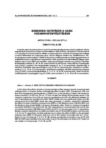 A szerzők, jelen tanulmányukban a hazai húsmarhatenyésztéssel kapcsolatos kutatásaik néhány eredményéről számolnak be. Angus marhák esetében a leptin (LEP) és a tyroglobulin (TG) lókuszoknál a TT genotípust hordozó bikáknál mérték az intramuszkuláris zsírtartalom legmagasabb értékeit a hosszú hátizomban (m. longissimus dorsi, LD) és a féliginas izomban (m. semitendinosus, ST). A diacilglicerol-aciltranszferáz 1 (DGAT1) lókusznál az AA/AA genotípusú bikák faggyútartalma az említett két izomban szignifikánsan meghaladta a többi genotípusnál mért értékeket. Magyar tarka fajtában három olyan SNP-t azonosítottak, amely kapcsoltságot mutatott (-log10P>9,5) a Fertilitás tenyészérték-indexszel (9., 28. és 29. kromoszómán) és két lókuszt, amely jelentős összefüggést (-log10P>22,7) mutatott a Hús tenyészérték-indexszel (2. és 11. kromoszómán). Emellett négy új lókusznál állapítottak meg kapcsoltságot (–log10P>12) az intramuszkuláris zsírtartalom vonatkozásában (1., 6., 13. és 17. kromoszómán). Szürkemarha esetében hét SNP mutatott kapcsoltságot (-log10P>12,87) a becsült tenyészértékkel (1., 3., 6., 9., 10. és 28. kromoszómán), illetve hat lókusz mutatott jelentős összefüggést (-log10P>11,50) a szarv színével (1., 3., 9., 18. és 25. kromoszómán).