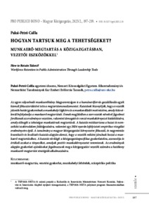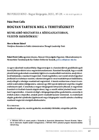 Csilla, Paksi-Petró (2025) Hogyan tartsuk meg a tehetségeket? Munkaerő-megtartás a közigazgatásban, vezetői eszközökkel. PRO PUBLICO BONO: MAGYAR KÖZIGAZGATÁS; A NEMZETI KÖZSZOLGÁLATI EGYETEM KÖZIGAZGATÁS-TUDOMÁNYI SZAKMAI FOLYÓIRATA, 13 (2). pp. 197-219. ISSN 2063-9058