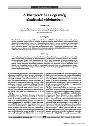 Poór, Gyula (2025) A környezet és az egészség akadémiai védelmében. SCIENTIA ET SECURITAS, 6 (1-2). pp. 223-225. ISSN 3057-9759