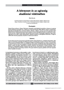 Németh Tamás professzor a Magyar Tudományos Akadémián viselt különböző pozícióiban a környezet és egészségügyének elkötelezett képviselője volt. A Környezet és Egészség Bizottság (KEB) 1985-ben alakult a korábbi akadémiai elnök, Szentágothai János vezetésével. Feladata a humán, az állati és a növényi szervezetek egészségét érintő különböző káros és jótékony környezeti hatások vizsgálata, hivatalos állásfoglalások készítése és tudományos rendezvények szervezése. Németh Tamás több, mint huszonöt évig volt ennek a bizottságnak meghatározó tagja, mindvégig aktívan részt vállalt az ülések előkészítésében, előadások tartásában és állásfoglalások készítésében. A dolgozat a KEB több évtizedes programjait, irányelveit és rendezvényeit tekinti át.