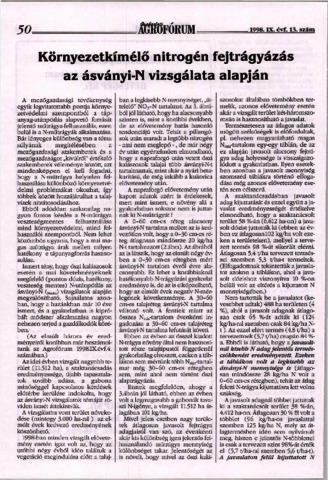 Horváth, József (1998) Környezetkímélő nitrogén fejtrágyázás az ásványi-N vizsgálata alapján. GYAKORLATI AGROFÓRUM, 9 (13). pp. 50-52. ISSN 1416-0927