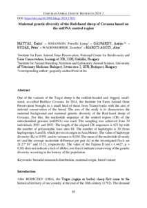 Mátyás, Enikő and Johanson, Pernille Lieng and Gáspárdy, András and Hudák, Péter and Wagenhoffer, Zsombor and Maróti-Agóts, Ákos (2024) Maternal genetic diversity of the Red-faced sheep of Covasna based on the mtDNA control region. DANUBIAN ANIMAL GENETIC RESOURCES, 9 (2). pp. 65-72. ISSN 2498-5910