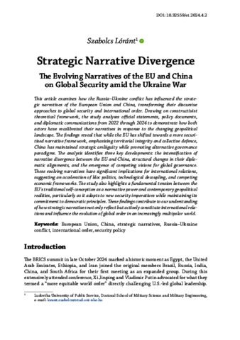 Lóránt, Szabolcs (2025) Strategic Narrative Divergence : The Evolving Narratives of the EU and China on Global Security amid the Ukraine War. EURÓPAI TÜKÖR: AZ INTEGRÁCIÓS STRATÉGIAI MUNKACSOPORT KÉTHAVONTA MEGJELENŐ FOLYÓIRATA, 27 (4). pp. 35-56. ISSN 1416-6151