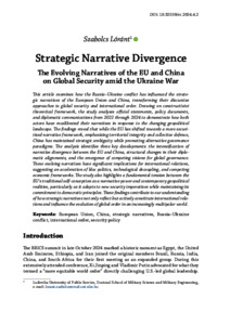 This article examines how the Russia–Ukraine conflict has influenced the strategic narratives of the European Union and China, transforming their discursive approaches to global security and international order. Drawing on constructivist theoretical framework, the study analyses official statements, policy documents, and diplomatic communications from 2022 through 2024 to demonstrate how both actors have recalibrated their narratives in response to the changing geopolitical landscape. The findings reveal that while the EU has shifted towards a more securitised narrative framework, emphasising territorial integrity and collective defence, China has maintained strategic ambiguity while promoting alternative governance paradigms. The analysis identifies three key developments: the intensification of narrative divergence between the EU and China, structural changes in their diplomatic alignments, and the emergence of competing visions for global governance. These evolving narratives have significant implications for international relations, suggesting an acceleration of bloc politics, technological decoupling, and competing economic frameworks. The study also highlights a fundamental tension between the EU’s traditional self-conception as a normative power and contemporary geopolitical realities, particularly as it adapts to new security imperatives while maintaining its commitment to democratic principles. These findings contribute to our understanding of how strategic narratives not only reflect but actively constitute international relations and influence the evolution of global order in an increasingly multipolar world.