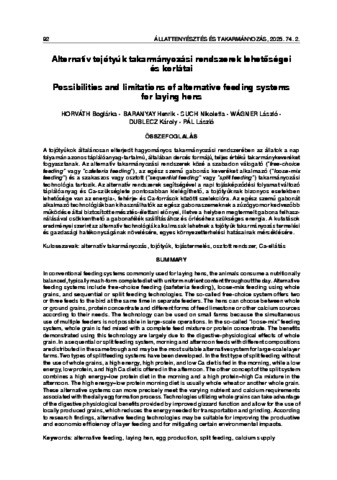 Horváth, Boglárka and Baranyay, Henrik and Such, Nikoletta and Wágner, László and Dublecz, Károly and PÁL, László (2025) Alternatív tojótyúk takarmányozási rendszerek lehetőségei és korlátai. ÁLLATTENYÉSZTÉS ÉS TAKARMÁNYOZÁS, 74 (2). pp. 92-108. ISSN 0230-1814