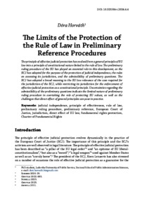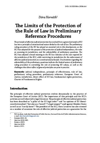 Horváth, Dóra (2025) The Limits of the Protection of the Rule of Law in Preliminary Reference Procedures. EURÓPAI TÜKÖR: AZ INTEGRÁCIÓS STRATÉGIAI MUNKACSOPORT KÉTHAVONTA MEGJELENŐ FOLYÓIRATA, 27 (4). pp. 73-87. ISSN 1416-6151