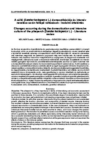 Molnár, Tamás and Marton, Csaba and Benedek, Ildikó and Urbányi, Béla (2025) A süllő (Sander lucioperca L.) domesztikációja és intenzív nevelése során fellépő változások. ÁLLATTENYÉSZTÉS ÉS TAKARMÁNYOZÁS, 74 (3). pp. 193-205. ISSN 0230-1814
