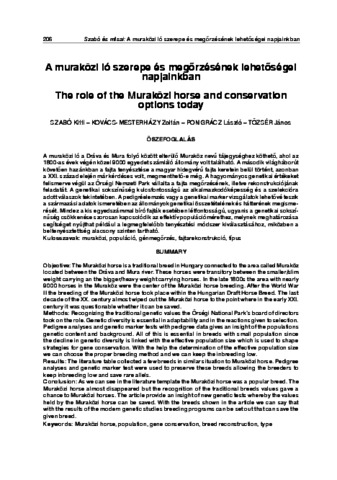 Szabó, Kitti and Kovács-Mesterházy, Zoltán and Pongrácz, László and Tőzsér, János (2025) A muraközi ló szerepe és megőrzésének lehetőségei napjainkban. ÁLLATTENYÉSZTÉS ÉS TAKARMÁNYOZÁS, 74 (3). pp. 206-219. ISSN 0230-1814