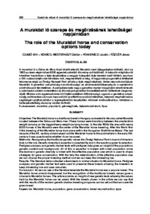 A muraközi ló szerepe és megőrzésének lehetőségei napjainkban