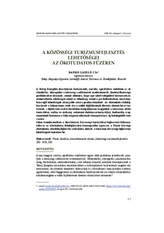 A Tokaj-Zemplén desztináció határmenti, rurális, aprófalvas vidékein az elvándorlás, elöregedés a lakosság csökkenését eredményezik, fenntarthatósági problémákat okoznak, annak ellenére, hogy egy adott települést természeti és emberalkotta adottságai mind az élhetőség, mind a gazdálkodásban, turizmusban rejlő lehetőségek okán jobb sorsra predesztinálnak. Az ökotudatos falufejlesztések a kilencvenes évek óta a vidék fejlődésének divatos elemei közé tartoznak, s fejlesztési eszköztárukban hangsúlyosan megjelent a turizmus aktív turisztikai, vallás-és örökség, valamint élelmiszerturisztikai, kulturális szegmenseinek bevonása a falu megmaradásának támogatására, új betelepülők vonzására. Jelen tanulmányban a desztináció közösségi turisztikai fejlesztési folyamatába és az ökotudatos falufejlesztési koncepcióba ágyazva, a Füzér községi ökotudatos okosfalu fejlesztés sarkalatos elemét, a turizmus közösségi fejlesztési lehetőségeit mutatom be.