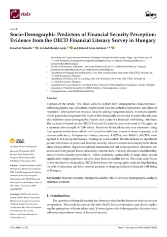 Németh, Erzsébet and Malatyinszki, Szilárd and Kálmán, Botond Géza (2025) Socio-Demographic Predictors of Financial Security Perception: Evidence from the OECD Financial Literacy Survey in Hungary. RISKS, 13 (12). No. 229. ISSN 2227-9091