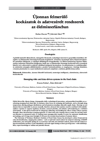 Farkas, Zsuzsa and Jóźwiak, Ákos (2025) Újonnan felmerülő kockázatok és adatvezérelt rendszerek az élelmiszerláncban = Emerging risks and data-driven systems in the food chain. SCIENTIA ET SECURITAS, 6 (1-2). pp. 171-176. ISSN 3057-9759