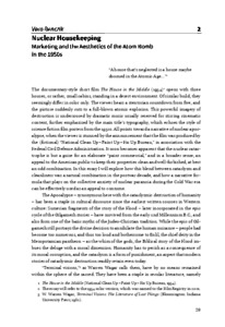 Benczik, Vera (2019) Nuclear Housekeeping : Marketing and the Aesthetics of the Atom Bomb in the 1950s. In: Az emberi sors és a történelem kereszteződésében : Tanulmánykötet Frank Tibor 70. születésnapjára = At the Crossroads of Human Fate and History : Studies in Honour of Tibor Frank on His 70th Birthday. Eötvös Loránd Tudományegyetem Bölcsészettudományi Kar Angol-Amerikai Intézet, Budapest, pp. 29-34. ISBN 978-963-489-041-6