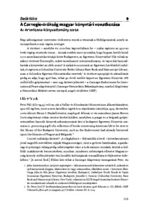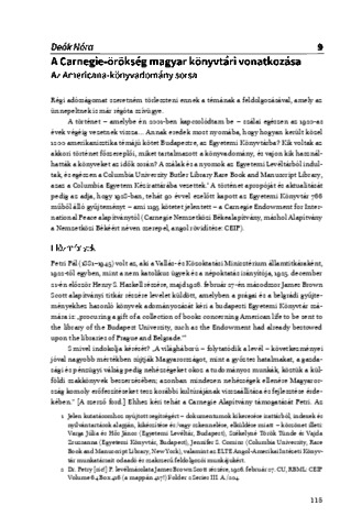 Deák, Nóra (2019) A Carnegie-örökség magyar könyvtári vonatkozása : Az Americana-könyvadomány sorsa. In: Az emberi sors és a történelem kereszteződésében : Tanulmánykötet Frank Tibor 70. születésnapjára = At the Crossroads of Human Fate and History : Studies in Honour of Tibor Frank on His 70th Birthday. Eötvös Loránd Tudományegyetem Bölcsészettudományi Kar Angol-Amerikai Intézet, Budapest, pp. 115-129. ISBN 978-963-489-041-6