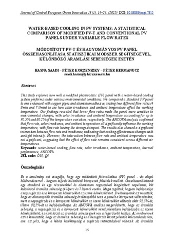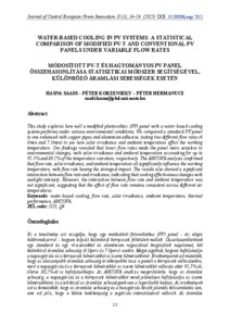 Saadi, Hasna and Korzenszky, Péter and Hermanucz, Péter (2025) Water-Based Cooling in PV Systems: A Statistical Comparison of Modified PV-T and Conventional PV Panels Under Variable Flow Rates. JOURNAL OF CENTRAL EUROPEAN GREEN INNOVATION, 13 (1). pp. 14-24. ISSN 2064-3004