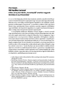 Pintz, Katalin (2019) Két hazához tartozni : A New-Jersey-ben felnőtt "hazatelepülő" amerikai magyarok identitása és nyelvhasználata. In: Az emberi sors és a történelem kereszteződésében : Tanulmánykötet Frank Tibor 70. születésnapjára = At the Crossroads of Human Fate and History : Studies in Honour of Tibor Frank on His 70th Birthday. Eötvös Loránd Tudományegyetem Bölcsészettudományi Kar Angol-Amerikai Intézet, Budapest, pp. 443-461. ISBN 978-963-489-041-6