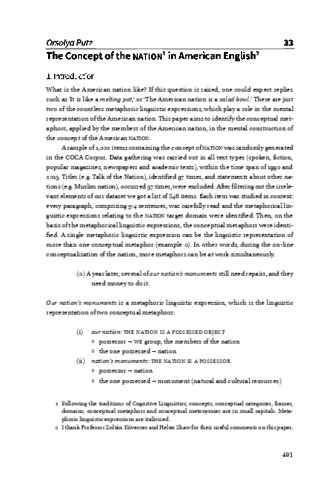 Putz, Orsolya (2019) The Concept of the NATION in American English. In: Az emberi sors és a történelem kereszteződésében : Tanulmánykötet Frank Tibor 70. születésnapjára = At the Crossroads of Human Fate and History : Studies in Honour of Tibor Frank on His 70th Birthday. Eötvös Loránd Tudományegyetem Bölcsészettudományi Kar Angol-Amerikai Intézet, Budapest, pp. 491-508. ISBN 978-963-489-041-6