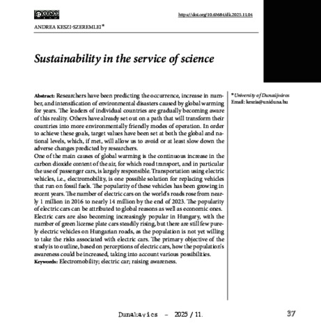 Keszi-Szeremlei, Andrea (2025) Sustainability in the service of science. DUNAKAVICS, 13 (11). pp. 37-42. ISSN 2064-5007