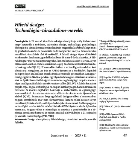 Vattay, Flóra Veronika (2025) Hibrid design: Technológia–társadalom–nevelés. DUNAKAVICS, 2025 (11). pp. 43-62. ISSN 2064-5007