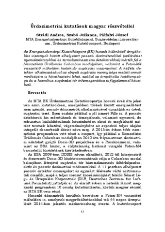 Strádi, Andrea and Szabó, Julianna and Pálfalvi, József (2016) Űrdozimetriai kutatások magyar részvétellel. ŰRTAN ÉVKÖNYV, 2015. pp. 57-64. ISSN 1788-7771