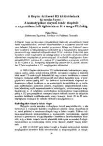 Futó, Péter (2017) A Kepler-űrtávcső K2 küldetésének új eredményei - A kisbolygókat elnyelő fehér törpétől a naprendszerbeli égitesteken át a mega-Földekig. ŰRTAN ÉVKÖNYV, 2016. pp. 59-66. ISSN 1788-7771