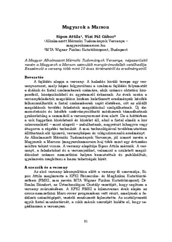 Sipos, Attila and Vizi, Pál Gábor (2017) Magyarok a Marson. ŰRTAN ÉVKÖNYV, 2016. pp. 81-91. ISSN 1788-7771