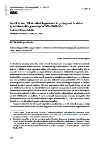 Fazakas, Gergely Tamás (2025) Bartók István: „Tőlünk telhetőleg művelni és gazdagítani”. Irodalmi gondolkodás Magyarországon 1530–1580 között. IRODALOMTÖRTÉNETI KÖZLEMÉNYEK, 129 (5). pp. 656-664. ISSN 0021-1486