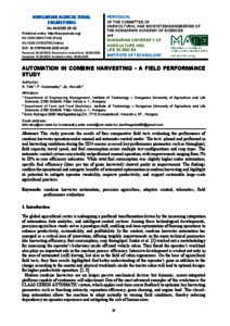 Tóth, Réka and Korzenszky, Péter Emőd and Horváth, Zs. (2025) Automation in combine harvesting - a field performance study. HUNGARIAN AGRICULTURAL ENGINEERING (44). pp. 29-42. ISSN 0864-7410