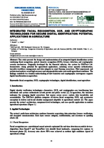 Szabó, T. and Kátai, László (2025) Integrated facial recogmition, OCR, and cryptographic technologies for secure digital identification: potential applications in agriculture. HUNGARIAN AGRICULTURAL ENGINEERING (44). pp. 43-47. ISSN 0864-7410