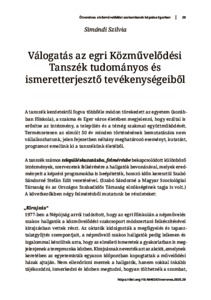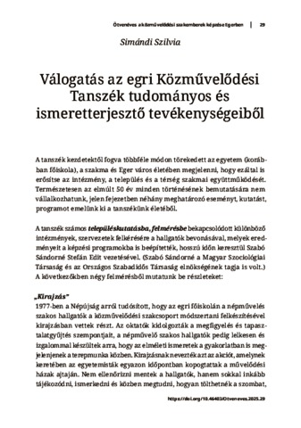 Simándi, Szilvia (2025) Válogatás az egri Közművelődési Tanszék tudományos és ismeretterjesztő tevékenységeiből. In: Ötvenéves a közművelődési szakemberek képzése Egerben. Eszterházy Károly Katolikus Egyetem Líceum Kiadó, pp. 29-47.