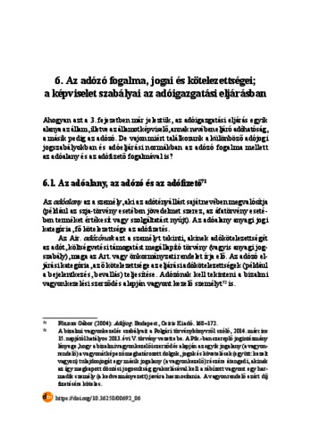 Magasvári, Adrienn (2020) Az adózó fogalma, jogai és kötelezettségei; a képviselet szabályai az adóigazgatási eljárásban. In: Adóigazgatás és adóeljárás. Ludovika Egyetemi Kiadó, Budapest, pp. 69-79. ISBN 978-963-531-073-9 (nyomda), 978-963-531-975-6 (pdf), 978-963-531-976-3 (epub)