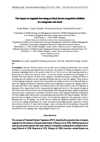 Fehér, Ádám and Centeri, Csaba and Keller, Boglárka and Katona, Krisztián (2024) The impact of ungulate browsing on black locust competitive abilities in a temperate oak forest. TÁJÖKOLÓGIAI LAPOK / JOURNAL OF LANDSCAPE ECOLOGY, 22 (2). pp. 43-62. ISSN 1589-4673