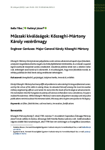 Balla, Tibor and Padányi, József (2025) Műszaki kiválóságok: Kőszeghi-Mártony Károly vezérőrnagy. MŰSZAKI KATONAI KÖZLÖNY, 35 (2). pp. 19-28. ISSN 1219-4166