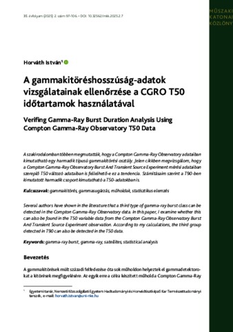 Horváth, István (2025) A gammakitöréshosszúság-adatok vizsgálatainak ellenőrzése a CGRO T50 időtartamok használatával. MŰSZAKI KATONAI KÖZLÖNY, 35 (2). pp. 97-106. ISSN 1219-4166