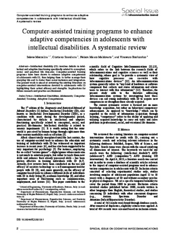 Mezzalira, Selene and Scandurra, Cristiano and Maldonato, Nelson Mauro and Bochicchio, Vincenzo (2025) Computer-assisted training programs to enhance adaptive competencies in adolescents with intellectual disabilities : A systematic review. INFOCOMMUNICATIONS JOURNAL, 17 (Spec). pp. 2-8. ISSN 2061-2079
