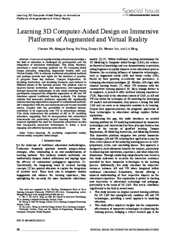 Wu, Chenxin and Huang, Mengjie and Yang, Rui and Xu, Zhaoyu and Sun, Wenxin and Wang, Liu (2025) Learning 3D Computer-Aided Design on Immersive Platforms of Augmented and Virtual Reality. INFOCOMMUNICATIONS JOURNAL, 17 (Spec). pp. 32-39. ISSN 2061-2079