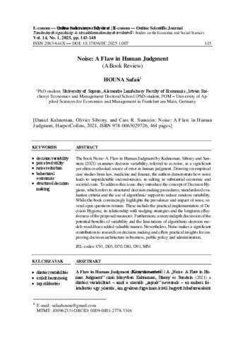 Houna, Safaa (2025) A Flaw in Human Judgment : A Book Review. E-CONOM, 14 (1). pp. 143-148. ISSN 2063-644X