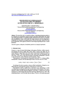 The aim of this work is to model the influence of grinding and gypsum quality on the setting time of α-hemihydrate using the design of experiments (DoE) method. The setting time of the gypsum binder is an important property determined by the particle size distribution of hemihydrate crystals. In this study, the change in particle size and setting time of hemihydrate was observed by varying the particle size and crystal water content of raw flue gas desulfurization (FGD) gypsum, duration of autoclaving and grinding intensity as model parameters.