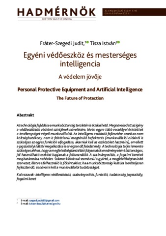 Fráter-Szegedi, Judit and Tisza, István (2025) Egyéni védőeszköz és mesterséges intelligencia : A védelem jövője = Personal Protective Equipment and Artificial Intelligence : The Future of Protection. HADMÉRNÖK, 20 (1). pp. 5-18. ISSN 1788-1919
