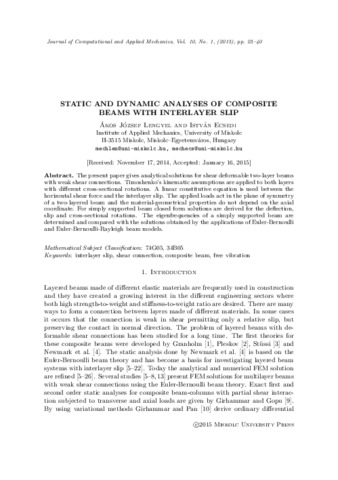 Lengyel, Ákos József and Ecsedi, István (2015) Static and dynamic analyses of composite beams with interlayer slip. JOURNAL OF COMPUTATIONAL AND APPLIED MECHANICS, 10 (1). pp. 25-40. ISSN 1586-2070
