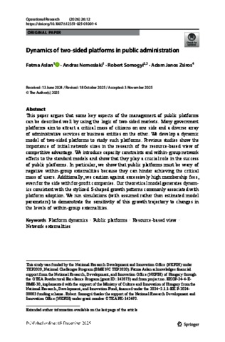 Aslan, Fatma and Nemeslaki, András and Somogyi, Róbert and Zsiros, Ádám János (2025) Dynamics of two-sided platforms in public administration. OPERATIONAL RESEARCH, 26 (1). ISSN 1109-2858