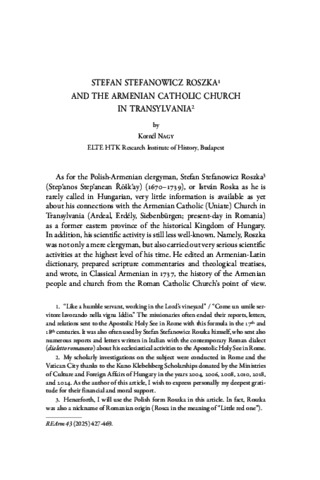 Nagy, Kornél (2025) Stefan Stefanowicz Roszka and the Armenian Catholic Church in Transylvania. REVUE DES ÉTUDES ARMÉNIENNES, 43. pp. 427-469. ISSN 0080-2549
