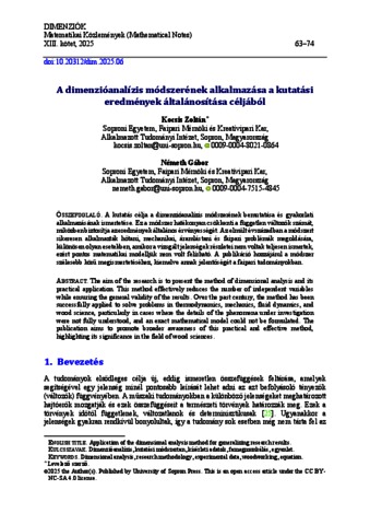 Kocsis, Zoltán and Németh, Gábor (2025) A dimenzióanalízis módszerének alkalmazása a kutatási eredmények általánosítása céljából. DIMENZIÓK : MATEMATIKAI KÖZLEMÉNYEK (13). pp. 63-74. ISSN 2064-2172