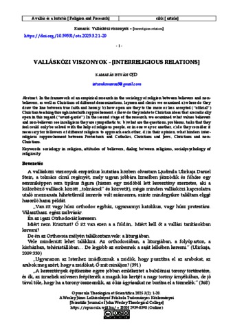 Kamarás, István (2025) Vallásközi viszonyok. OPUSCULA THEOLOGICA ET SCIENTIFICA, 3 (2). pp. 1-20. ISSN 2939-8398