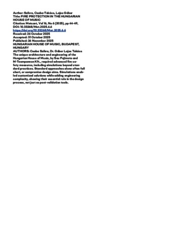 HUNGARIAN HOUSE OF MUSIC, BUDAPEST, HUNGARY AUTHORS: Csaba Szikra, Dr. Gábor Lajos Takács The unique architecture and engineering of the Hungarian House of Music, by Sou Fujimoto and M-Teampannon Kft., required advanced fire safety measures, including simulations beyond standard practices. Standard approaches alone often fall short, or compromise design aims. Simulations enabled customized solutions while adding engineering complexity, showing their essential role in the design process, not just as post-validation tools.