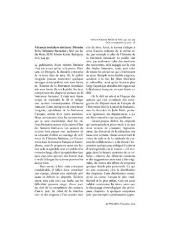 Martonyi, Éva: A francia irodalom története. Réd. par Judit Maár. | Ágoston, Piroska: Danza cultura e società nel Rinascimento italiano. A cura di Eugenia Casini Ropa & Francesca Bortoletti.