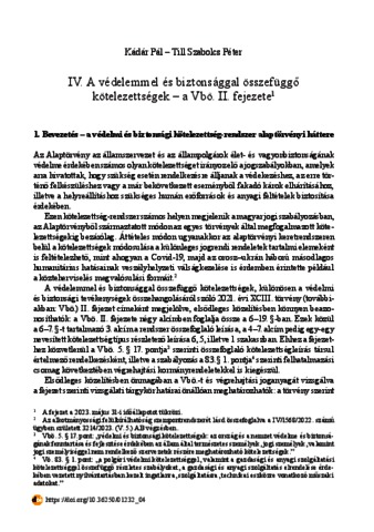Kádár, Pál and Till, Szabolcs Péter (2024) A védelemmel és biztonsággal összefüggő kötelezettségek – a Vbö. II. fejezete. In: A védelmi és biztonsági szabályozás magyarországi reformja. Ludovika Egyetemi Kiadó, Budapest, pp. 127-158. ISBN 9789636531171; 9789636531188; 9789636531195