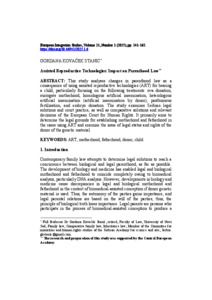 This study analyses changes in parenthood law as a consequence of using assisted reproductive technologies (ART) for bearing a child, particularly focusing on the following treatments: ova donation, surrogate motherhood, homologous artificial insemination, heterologous artificial insemination (artificial insemination by donor), posthumous fertilisation, and embryo donation. The study examines Serbian legal solutions and court practice, as well as comparative solutions and relevant decisions of the European Court for Human Rights. It primarily aims to determine the legal grounds for establishing motherhood and fatherhood in the cases using ART and examine the issue of legal status and rights of the donor of the genetic material.